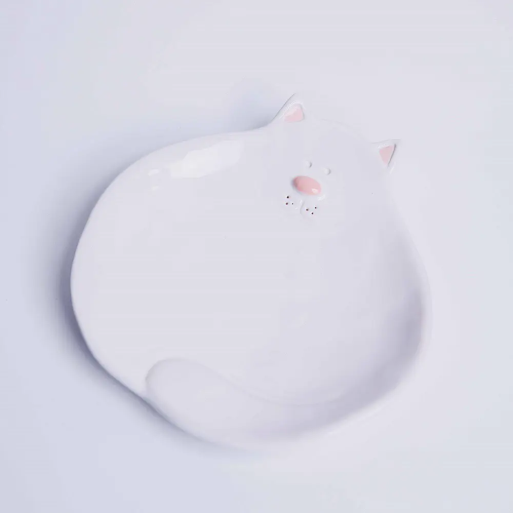 Biały talerzyk deserowy kot - Rękodzieło na prezent - Lamabo Ceramics