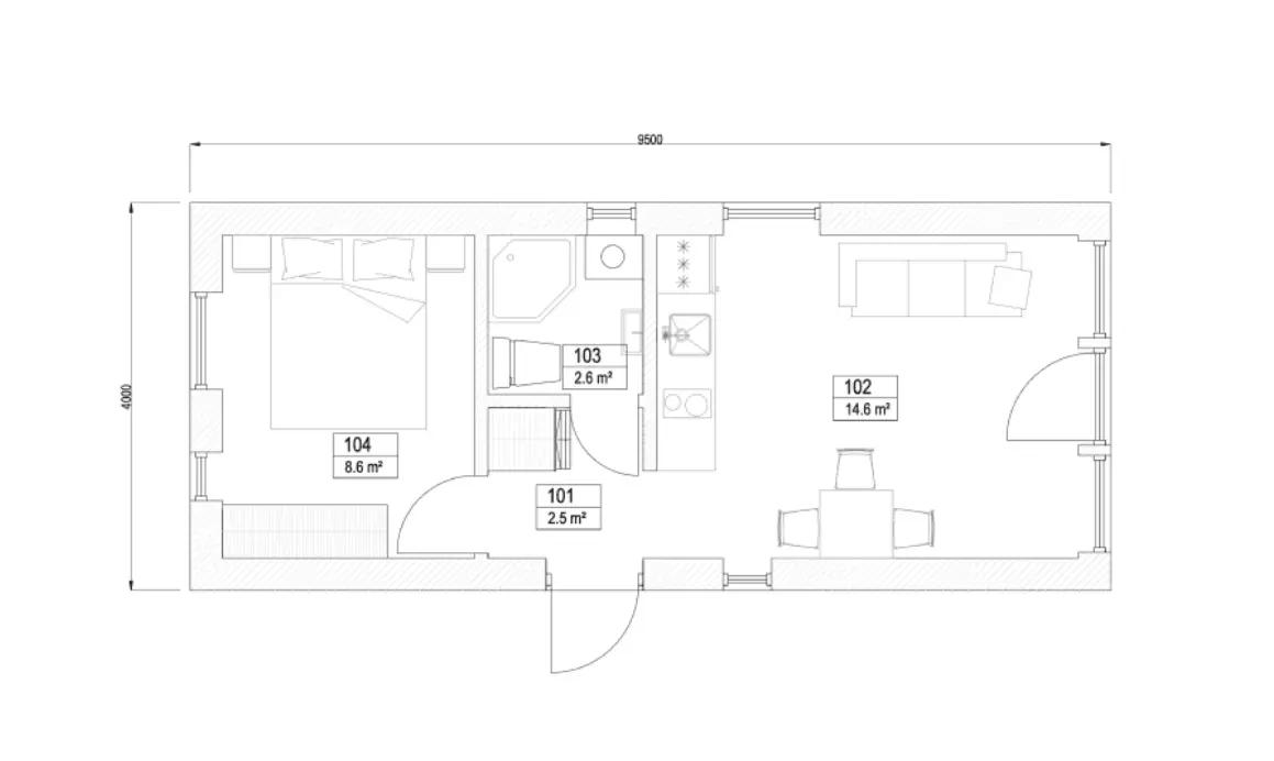 Stylish, energy-efficient house of 38 m² made of premium materials. Excellent insulation reduces energy costs, and fast installation speeds up the introduction. Ideal for a cozy and ecological life.