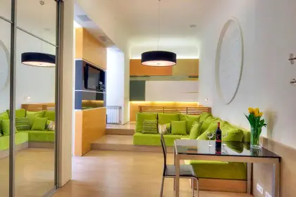 Nowoczesne apartamenty odznaczają się nowoczesnym wystrojem. Każdy z nich wyposażony jest w telewizor z płaskim ekranem i dostępem do kanałów telewizji kablowej oraz ekspres do kawy. W niektórych apartamentach znajduje się łóżko z baldachimem. Do dyspozycji Gości jest w pełni wyposażony aneks kuchenny z kuchenką mikrofalową i lodówką. W łazience znajduje się prysznic, suszarka do włosów i bezpłatny zestaw kosmetyków.