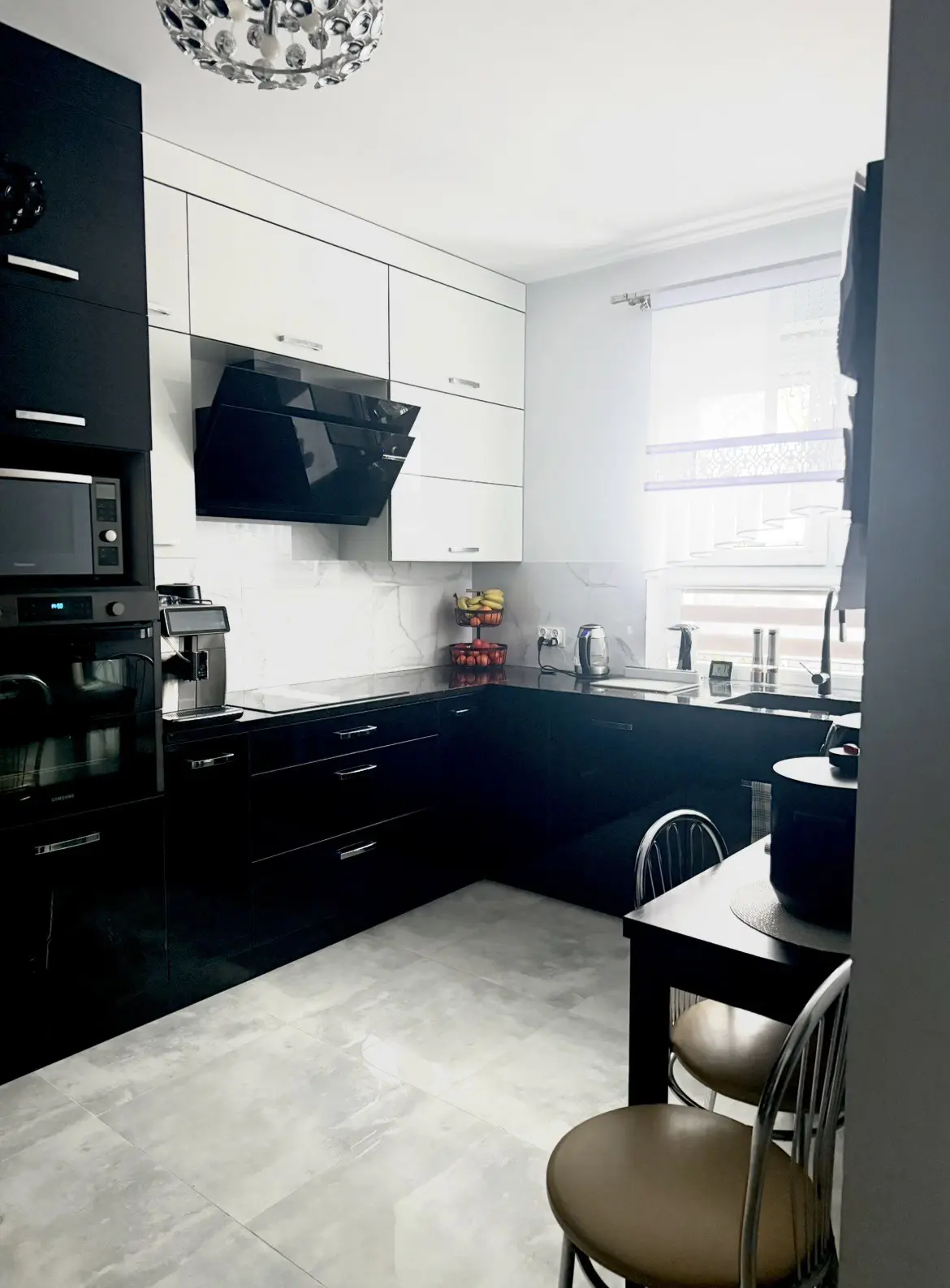 Dom o powierzchni 102,59 m² oferuje 3 oddzielne sypialnie oraz przestronny salon, który pełni funkcję czwartego pokoju. Dodatkowo nieruchomość posiada 2 łazienki oraz funkcjonalną kuchnię. Przemyślany i wygodny układ pomieszczeń zapewnia komfort całej rodzinie oraz dużą swobodę aranżacyjną – zarówno pod potrzeby mieszkaniowe, jak i np. gabinet do pracy zdalnej. Wnętrze wyróżnia się nowoczesną kuchnią w czarnym wykończeniu oraz dębowymi schodami z efektownym podświetleniem LED.