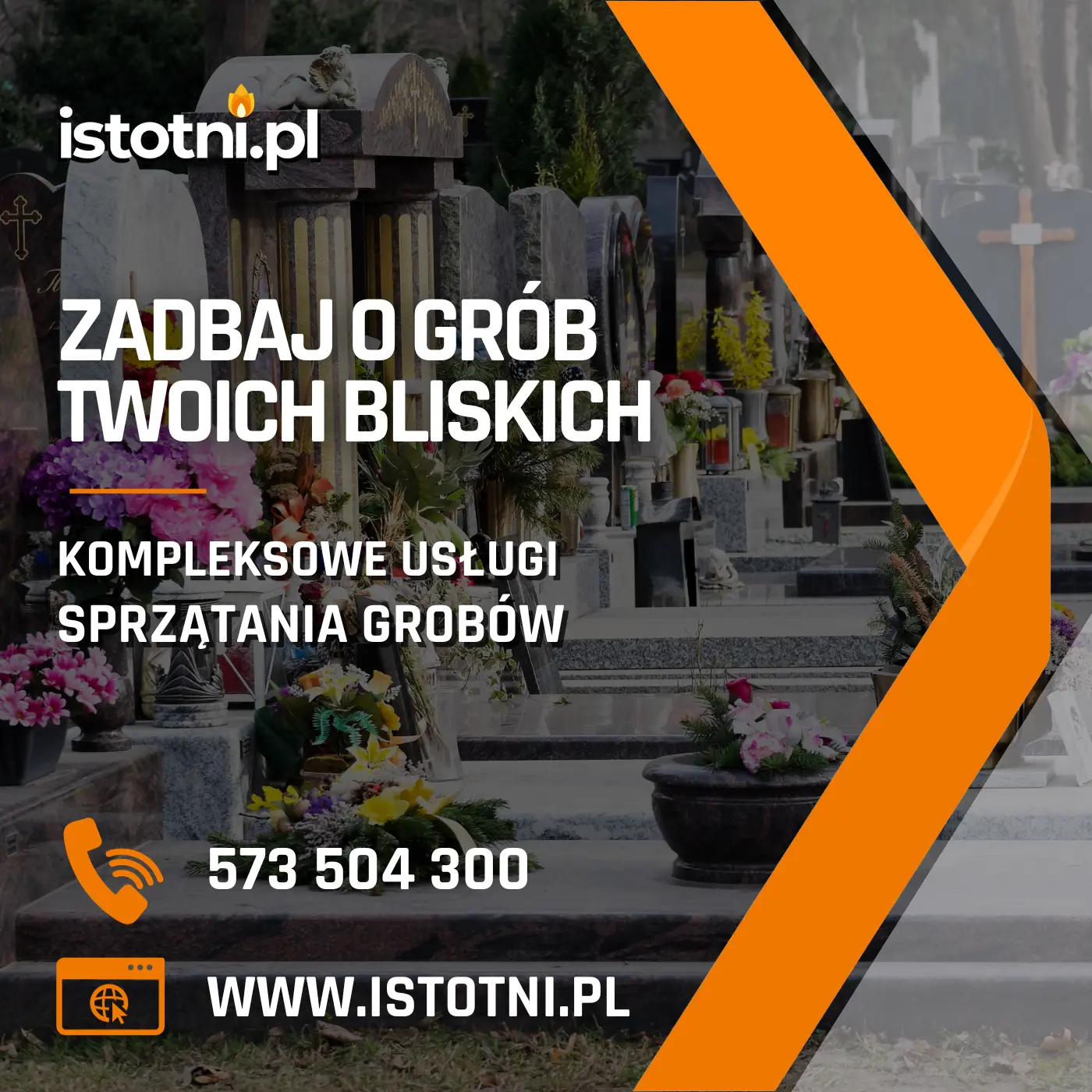 - Opieka całoroczna nad grobem (dbanie o grób przez cały rok, sprzątanie nagrobka co miesiąc)