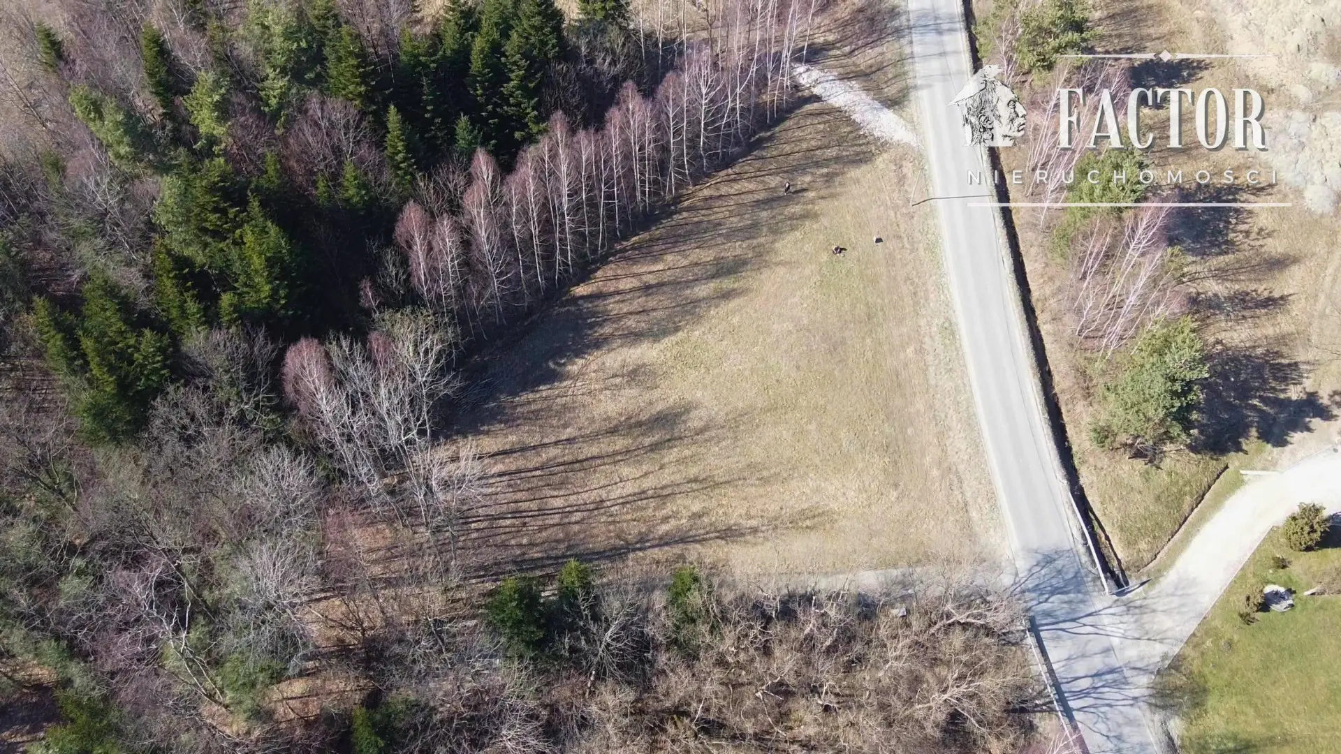 Trzeci bok stanowi działka rolna z gęstym zadrzewieniem.